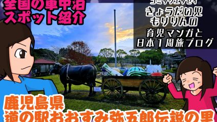 全国の車中泊スポットを紹介!!おすすめ!道の駅おおすみ弥五郎伝説の里(鹿児島)で車中泊! 車中泊を目的とした場合の環境が非常に整っている道の駅です。おすすめ!敷地が非常に広大で幹線道路からの騒音が届きにくく、尚且つ敷地内に銭湯あり。これだけでかなりありがたい施設なのですが、周辺にコンビニやコインランドリーもあるのでそのあたりの環境もばっちり。おまけにWi-Fiもあるので超助かりと至れり尽くせりです。 2025.11.29 1全国の車中泊スポットを紹介!!