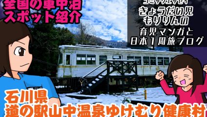 全国道の駅 車中泊スポット環境は超良いが…道の駅山中温泉 ゆけむり健康村(石川)で車中泊 何とも判断が難しい道の駅。そもそも道の駅が長期間休止中でトイレ以外の施設が利用できません。また、記事内写真にもあるように夜間帯で使用できる駐車場が限られており、そちらからはトイレが結構遠くなってしまいます。周辺環境はかなり良く、コンビニ・銭湯・コインランドリーいずれも車で1分程です。頑張って再開して欲しいが… 2026.04.29 0全国道の駅 車中泊スポット全国の車中泊スポットを紹介!!もりりんパパの車中泊記事TOPページ中部 道の駅