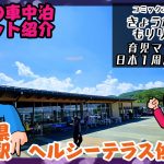 駐車場は平均と比較して平均的な大きさのスペースで夜間の騒音は小さめ、標高が高いので夏場は快適に過ごしやすく銭湯やコンビニ・コインランドリーまでも近い位置にある…車中泊者にとってかなり利用しやすめな道の駅ではないでしょうか。