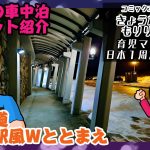 駐車場は平均よりも大きめのスペースで夜間の騒音は小さめ、そして温泉は敷地内に、コンビニとコインランドリーともに近い位置にある、車中泊者にとってはかなり利用しやすいタイプの道の駅ではないでしょうか。