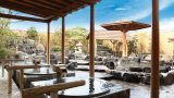 天然温泉かきつばた:1階は温浴施設で、露天風呂・韓国風低温サウナやヨガなどを楽しめる。2階はフィットネスゾーンになっている。施設外部には足湯スペースあり。
