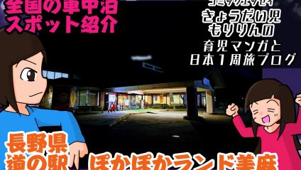 全国の車中泊スポットを紹介!!標高800m!道の駅風穴の里(長野)で車中泊/涼しい宿泊地 読み方は”ふうけつのさと”。標高が高めで800mあるので真夏でも夜間の気温は25度程で落ち着くことが多く車中泊しやすい環境。山間部にあるのでコンビニまでの距離はおよそ10キロと遠い点にご注意を。夜間向かう場合は周辺にあまり目立った建物がないん。ただ、銭湯はコンビニよりも近くにある。駐車場はかなり狭いことにも注意。 2025.06.20 2025.09.24 0全国の車中泊スポットを紹介!!全国道の駅 車中泊スポットもりりんパパの車中泊記事TOPページ中部 道の駅